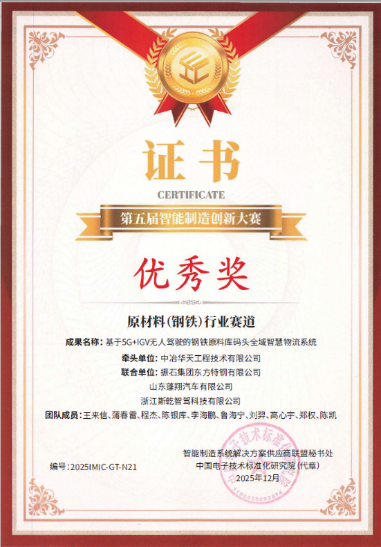 近日,第五屆智能制造創(chuàng)新大賽結(jié)果揭曉。中冶華天牽頭申報(bào)的兩項(xiàng)成果——“AI+熱軋長(zhǎng)材車(chē)間智能制造關(guān)鍵技術(shù)與應(yīng)用”和“基于5G+IGV無(wú)人駕駛的鋼鐵原料庫(kù)碼頭全域智慧物流系統(tǒng)”,分別入選“AI+制造”解決方案賽道與原材料(鋼鐵)行業(yè)賽道決賽并獲優(yōu)秀獎(jiǎng)。上述成果有力展現(xiàn)了公司在鋼鐵智能制造與智慧物流領(lǐng)域的技術(shù)積累、系統(tǒng)集成能力與工程化落地水平。